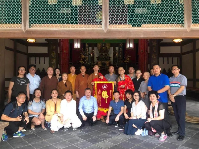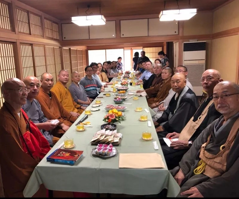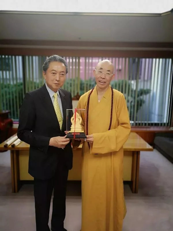 7月19日下午广霖大和尚一行26人抵达日本,前首相鸠山由纪夫,佛教协会理事长釜田隆文,福址大学校长大谷哲夫会见。