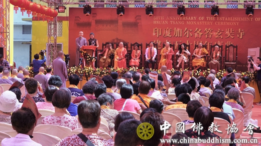 2018年3月14日上午,加尔各答玄奘寺建寺五十周年庆典拉开帷幕,在庆典仪式上,中国驻加尔各答领事馆总领事马占武、中国佛教协会副秘书长、杭州灵隐寺住持光泉法师、中国佛教协会藏南办主任清远法师、加尔各答玄奘寺住持惠榕法师、广东梅州千佛塔寺住持明慧法师、印度西孟邦政府灾害管理及民防事务部长可汗(JavedAhmedKhan)、妇女事务委员会委员费尔南德斯(MariaFernandes),印度普提迦耶摩诃菩提寺住持查林达(ChalindaBhante)和副住持迪那南德(DeenanandBhante),知名电影演员森古普塔(RituparnaSengupta),以及来自灵隐寺的法师、国内佛教界专家学者和中印两国信众数百人共襄盛举。
