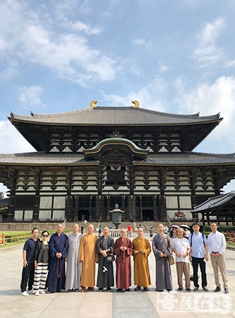 7月23日清晨,诚信法师一行拜访奈良东大寺,受到东大寺狭川光俊住持的热情接待。中午诚信法师一行拜访天台宗日本大本山比睿山延暦寺,受到小堀光實执行代表的热情接待。