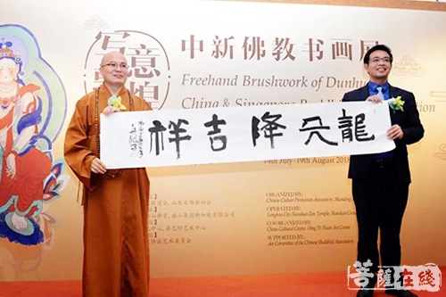 上午11时,开幕式正式开始。新加坡南山集团董事长宋建波致感谢词,并指出:佛教文化交流与传播是新时代的要求,同样更是服务“一带一路”建设的要求。中国国家主席习近平在印度及东南国家访问期间也不止一次肯定了佛教在中国文化交流中起到的积极作用。今天真龙法师代表南山禅寺与新加坡佛教文化做展览交流,不仅促进南山禅寺对外交流学习,更是符合国家新时代“一带一路”文化建设的需要,同时也为推广齐鲁文化打开了新的窗口。