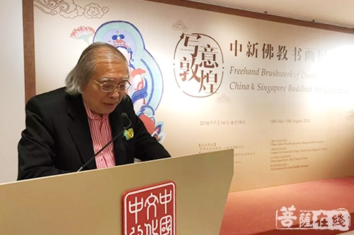 中国驻新加坡大使馆参赞兼总领事王家荣致辞中说,佛教传承以种种形式体现,其中书画则是极大的完整保留了佛教的艺术魅力,此次展览将呈现给新加坡友人中国人的书画魅力。让新加坡的人民更加了解中国的文化艺术,加深两国友谊,发掘出了这些艺术作品背后的故事、精神、乃至价值观。