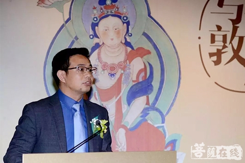 最后真龙法师致感谢词,并讲述了自己成长历程,求学的过程,以及对佛教文化的理解与运用。在讲话中他强调了三点:一是效仿前贤高僧大德加强中国与新加坡佛教之间的交流。二是抛砖引玉让大家因此去认识敦煌艺术,了解中国文化,爱上东方艺术。三是向新加坡佛教界学习。希望得到新加坡佛教人士的批评与指正。