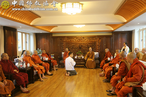 班丹达迪拉萨亚毕温达长老代表团员们感谢学诚会长和中国佛教协会的热情接待。长老非常认同学诚会长的讲话,他对于中缅佛教传统友谊的巩固和传承充满信心。他表示,此次代表团能够来到世界上人口最多、社会经济稳定繁荣的中国访问,感到非常高兴。中缅两国既是友好邻邦,又有着密切的佛教文化交流,缅甸佛教界非常乐意出席第五届世界佛教论坛,期待与世界佛教同仁一起交流。