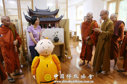 会见结束后,学诚会长与代表团成员合影留念。代表团随后饶有兴致地参观了龙泉寺的学修场所,并在动漫创作中心观看了佛教动漫作品,还与“贤二机器僧”愉快互动。