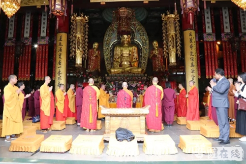 祈福仪式由如恒法师主持。庄严的祈福仪式后,松江区宗教民族事务办公室副主任高长泰;国旅集团松江区域总经理徐燕军;中国亚洲经济发展协会旅游产业委员会会长、上海市现代旅游交流中心主任、原上海市旅游局副局长黄国忠;斯里兰卡驻上海总领事Lakshitha Rathnayake先后致辞,最后悟端大和尚作答谢词。