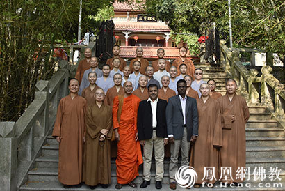 参访团与国际班全体学僧合影留念(图片来源:凤凰网佛教 摄影:南普陀寺)