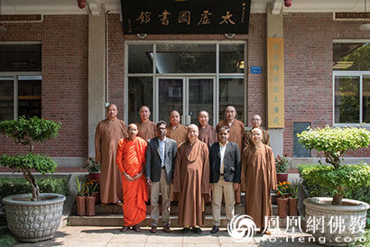 闽南佛学院院长则悟大和尚等与参访团合影留念(图片来源:凤凰网佛教 摄影:南普陀寺)